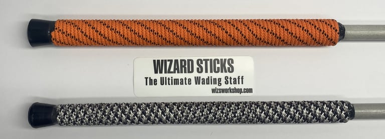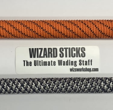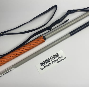 The "STANDARD" Wizard Stick Wading Staff is made to last. It's made of fiberglass that provides just the right amount of flex and durability. The "STANDARD" has a overall length of 54", it's 3/4" in diameter with a rope wrapped handle that's 14" in length. The handle comes in either a 1" or 1 1/4" in diameter in assorted colors. It features an adjustable over the shoulder sling system in two sizes and is made with 1" webbing with a quick release buckle. The quick release buckle allows you to leave the sling over your shoulder and unclip the staff to get in a boat or in your vehicle to go to the next run. The internal weight in the bottom and rubber tip hold it in place when in use.